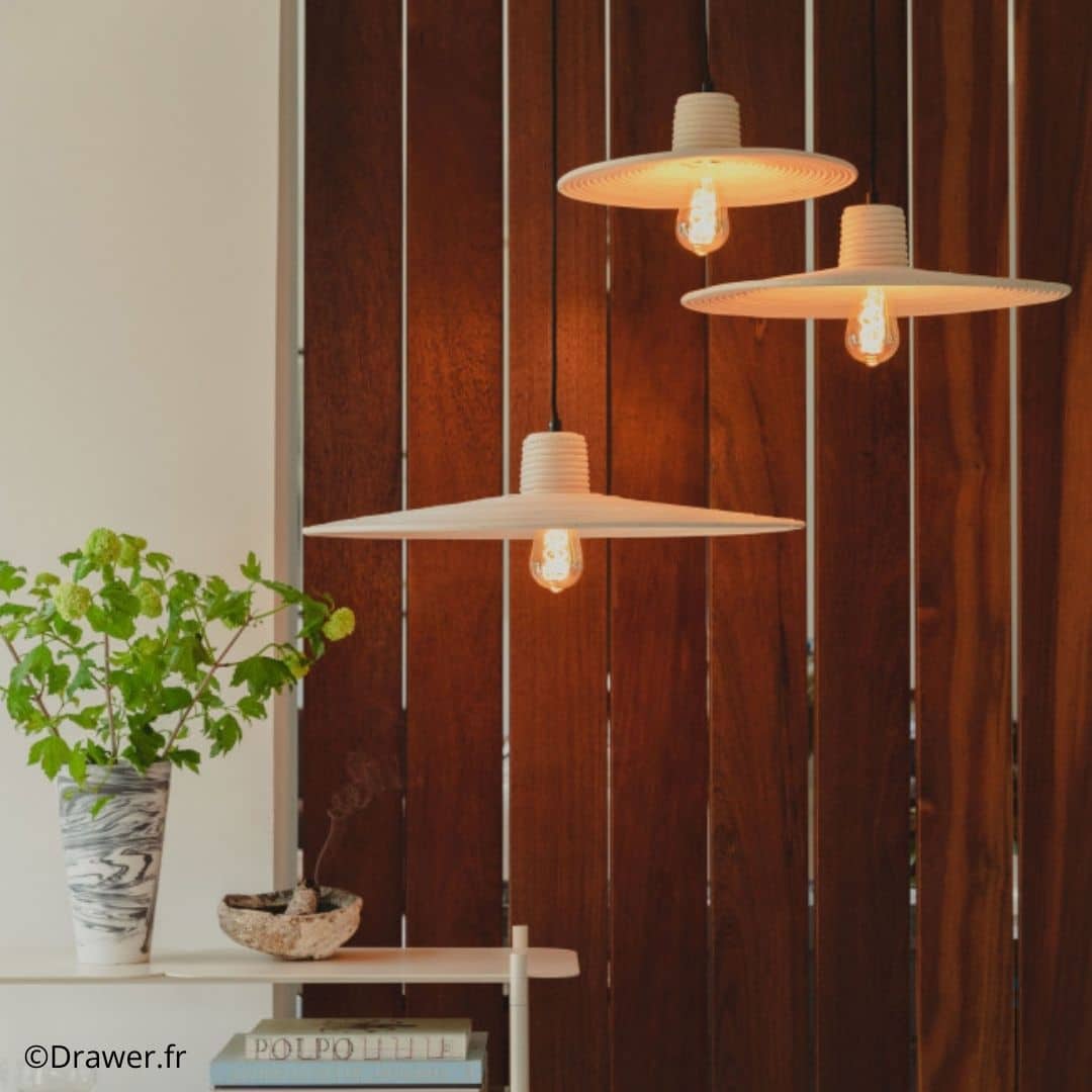Aujourd’hui, alors que nous n’avons pas encore attaqué l’étape de la décoration, j’aime me projeter en choisissant dès maintenant les ambiances, les lumières, les petits détails qui feront toute la différence. Voici donc une sélection de luminaires Drawer que j’aimerais voir, un jour, illuminer notre maison.